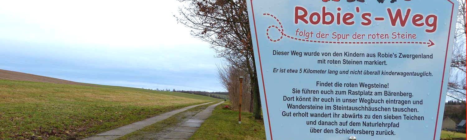 Die Kinder der Kita „Robies Zwergenland“ aus Rosenthal-Bielatal laden Sie herzlich zu einer originellen und spannenden Familienwanderung ein. Auch für kleine Füße ist Robies Weg geeignet, für Kinderwagen allerdings nicht durchgehend.