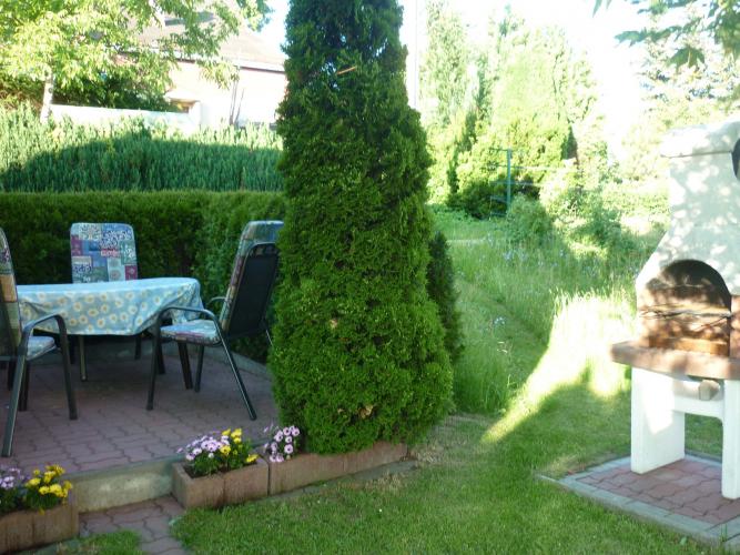 Terrasse und Spielplatz im Garten, Grillmöglichkeit, Parkplatz am Haus.