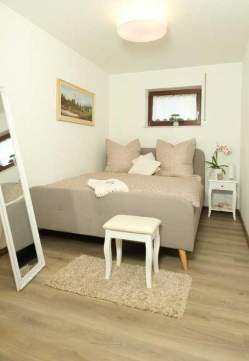 1 Doppelbett, 1 Schlafsofa als Aufbettung