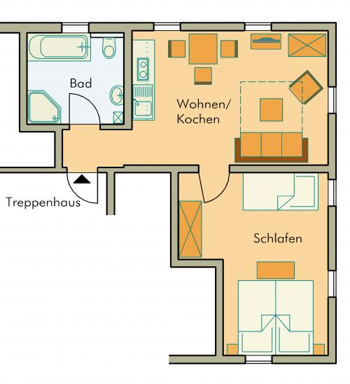 2 Schlafzimmer, Wohnraum mit Küche, DU/WC